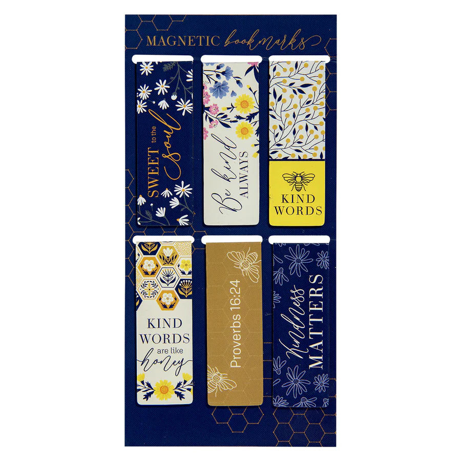 The Kind Words Six Piece Magnetic Bookmark Set consists of six uniquely designed Magnetic Bookmarks with colorful designs and encouraging messages.